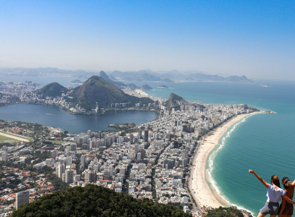 Iniciaremos el recorrido en la base del morro, en la entrada al barrio Vidigal. Tomaremos una mototaxi (o combi) que nos llevará al inicio del sendero. Comenzaremos desde allí una caminata de intensidad fácil/media con duración de aprox. 50 minutos, que culminará en la cima de la montaña Dos Hermanos. Desde allí tendremos una vista 360° donde podremos apreciar: playa de São Conrado, Pedra da Gávea, Macizo de la Floresta de Tijuca, Cristo Redentor, Pan de Azúcar, Lagoa Rodrigo de Freitas, Arpoador, Playa de Copacabana, Ipanema, Leblon, Islas Cagarras y el Océano Atlántico. En el trayecto pasaremos por el mirador de Rocinha, en donde podremos apreciar desde arriba la famosa favela en toda su extensión. Luego descenderemos por el sendero nuevamente para recorrer la favela a pie pasando por numerosos puntos de interés tales como: bares y restaurantes típicos, miradores, espacios de arte urbano, etc. Finalizamos el paseo retornando a la entrada del barrio, situada en la Av. Niemeyer, que posee múltiples opciones de transporte público con acceso a toda zona sur y oeste.