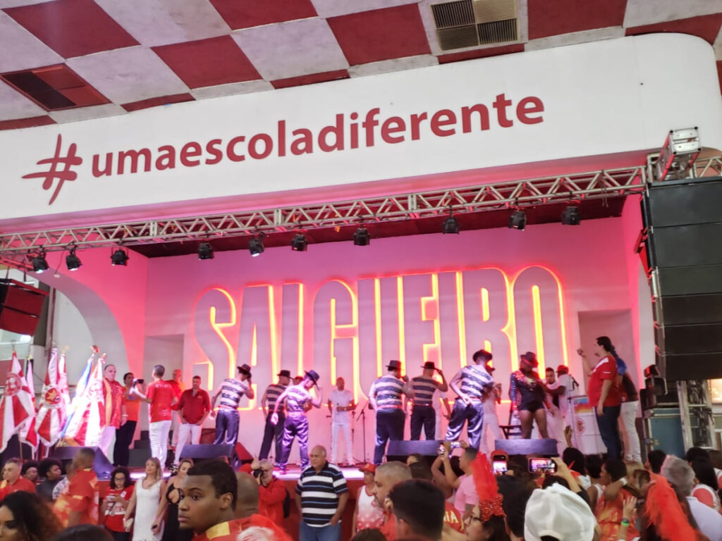 Los sábados a partir de las 21hs buscamos a los pasajeros y nos dirigimos hacia la Escola de Samba Salgueiro, donde asistiremos a un espectáculo con la participación de los pasistas de samba de la escuela mostrando coreografías, una banda de samba en vivo y toda la energía del Carnaval Carioca. Una noche que promete una inyección de alegría al pulso de la Batería Furiosa, la banda de músicos de la escola.